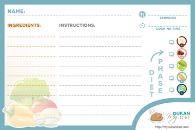 Have hand written recipes lying around? Want to make them easier to manage in terms of the Dukan diet? Then check out this card :) It's free but I'm always grateful for any extra tip you throw in - it helps keep the website free. :)